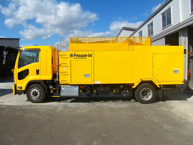 2tから12t車まで多様な強力吸引車両を要し、汚水・汚泥・廃油・廃液・粉体など様々な対象物を素早く吸引回収し運搬排出します。施工現場にて高圧洗浄車で洗浄し、下水道に流すことのできない汚泥を強力吸引車で吸い取り、処理場まで運搬します。